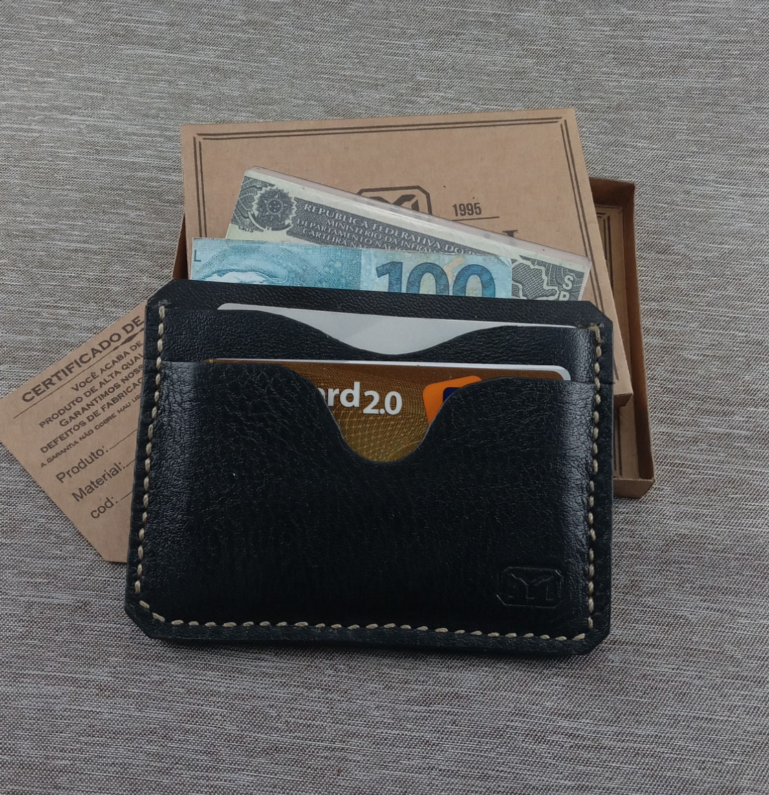 Carteira em Couro legítimo compacta confeccionada à mão.